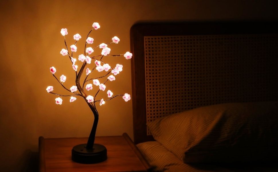 Create a cozy, magical atmosphere with soft LED-lit cherry blossom branches
