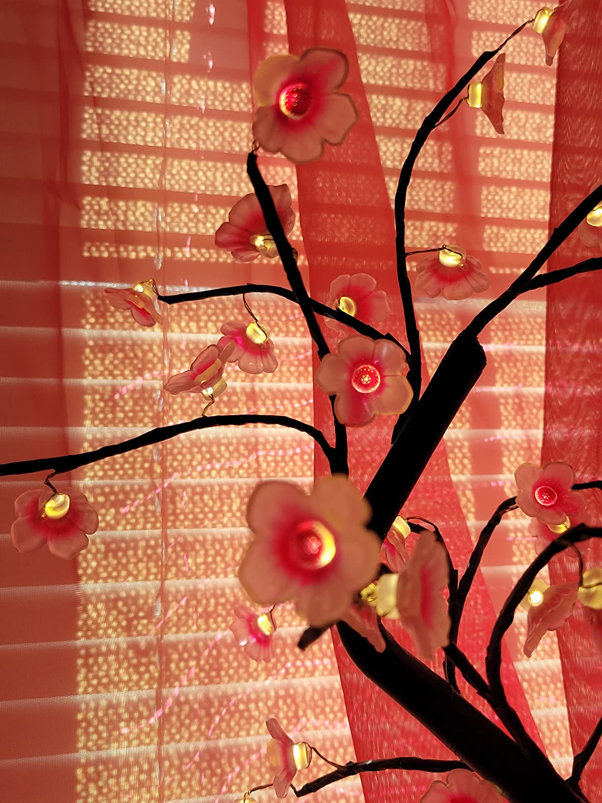 I was really happy with this bonsai cherry blossom tree light! It was super easy to assemble—just insert the tree into the base, plug in the USB or use AA batteries, and it lights up beautifully. The 20-inch height is perfect, and the soft LED glow adds a cozy and calming ambiance to any room without being too bright or dim.