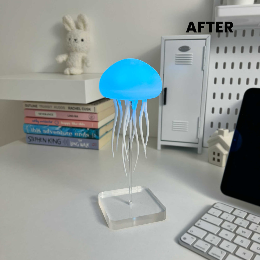 I bought this lamp as a way to unwind after long work days, and it’s been a great addition to my home. The jellyfish move so smoothly, and the lights create a calming ambiance in my living room. It’s also easy on the eyes with no harsh flickering. A great buy if you need something relaxing!